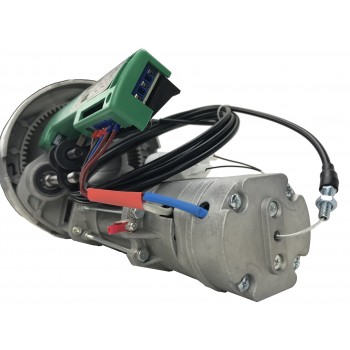 Se suministra con casquillo adaptador para ejes de 48 mm, expansor adaptador para poleas de 220 mm, sistema de desbloqueo interno del motor, cable eléctrico de conexión del motor y manual de instrucciones.